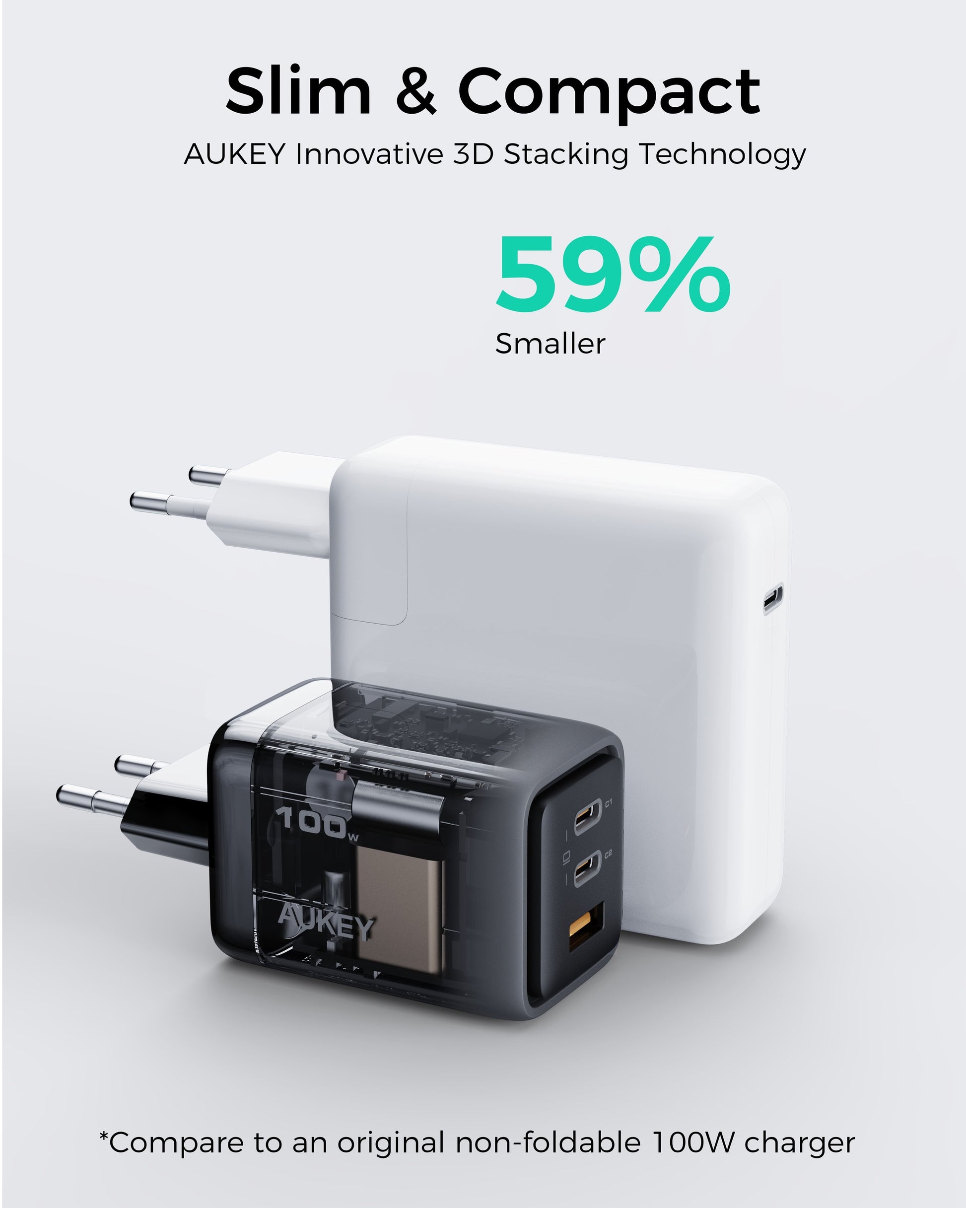 AUKEY Charger Type C 100W GAN III PD 3.0 PPS Super Fast Charging Comet Mix 3 100W Series PA-C5