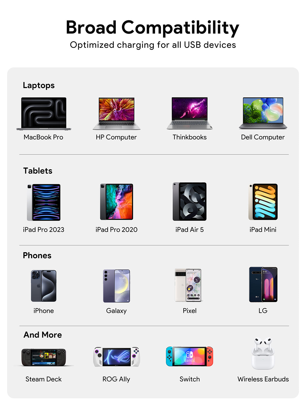 Melindungi perangkat kesayangan anda dari overheat, overvoltage, overcurrent, overcharge dan short circuit, Mampu mengatur dan menyesuaikan daya yang diperlukan oleh perangkat anda