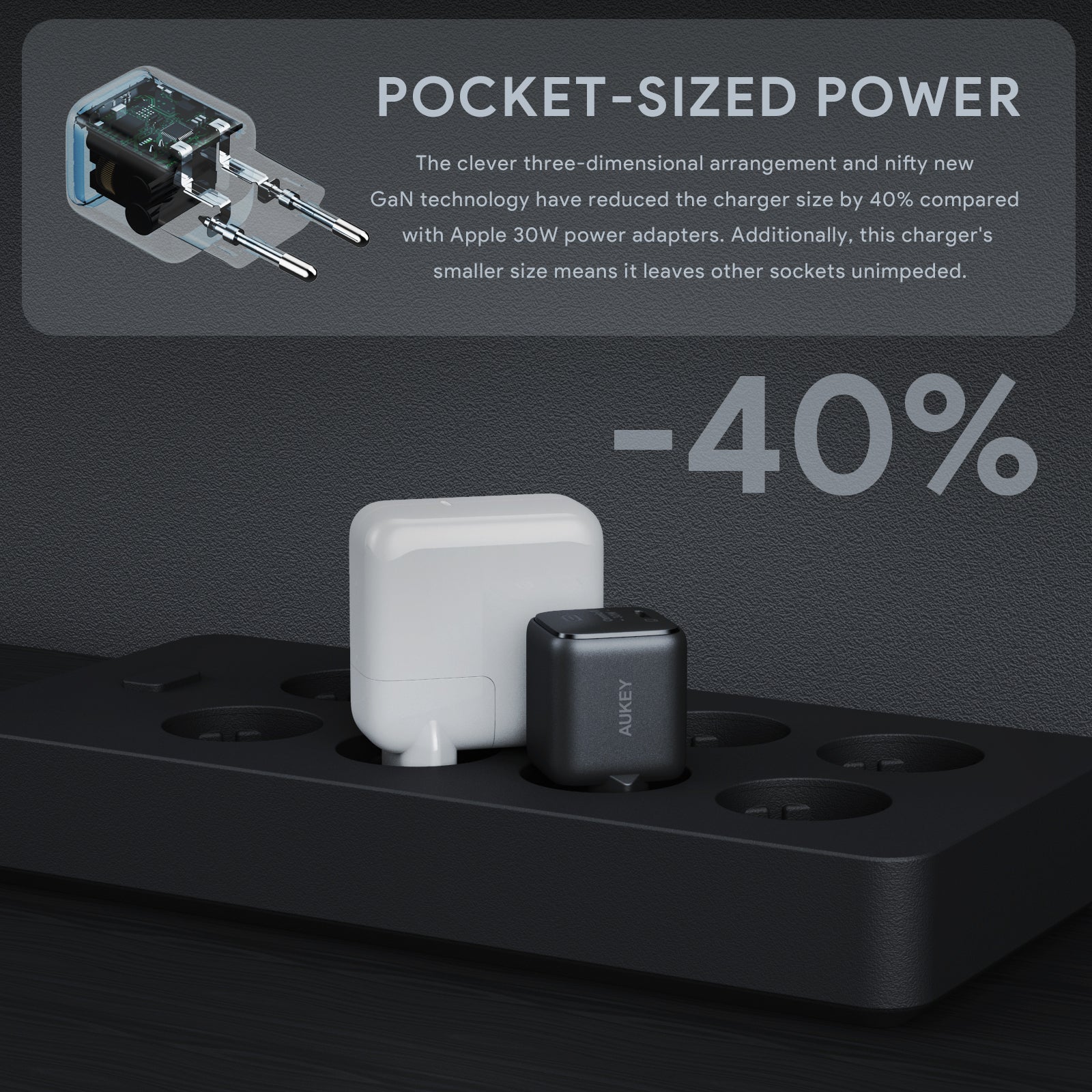 Pengisi Daya AUKEY Tipe C 30W PA-B1L-BK GAN PD 3.0 PPS Pengisian Cepat