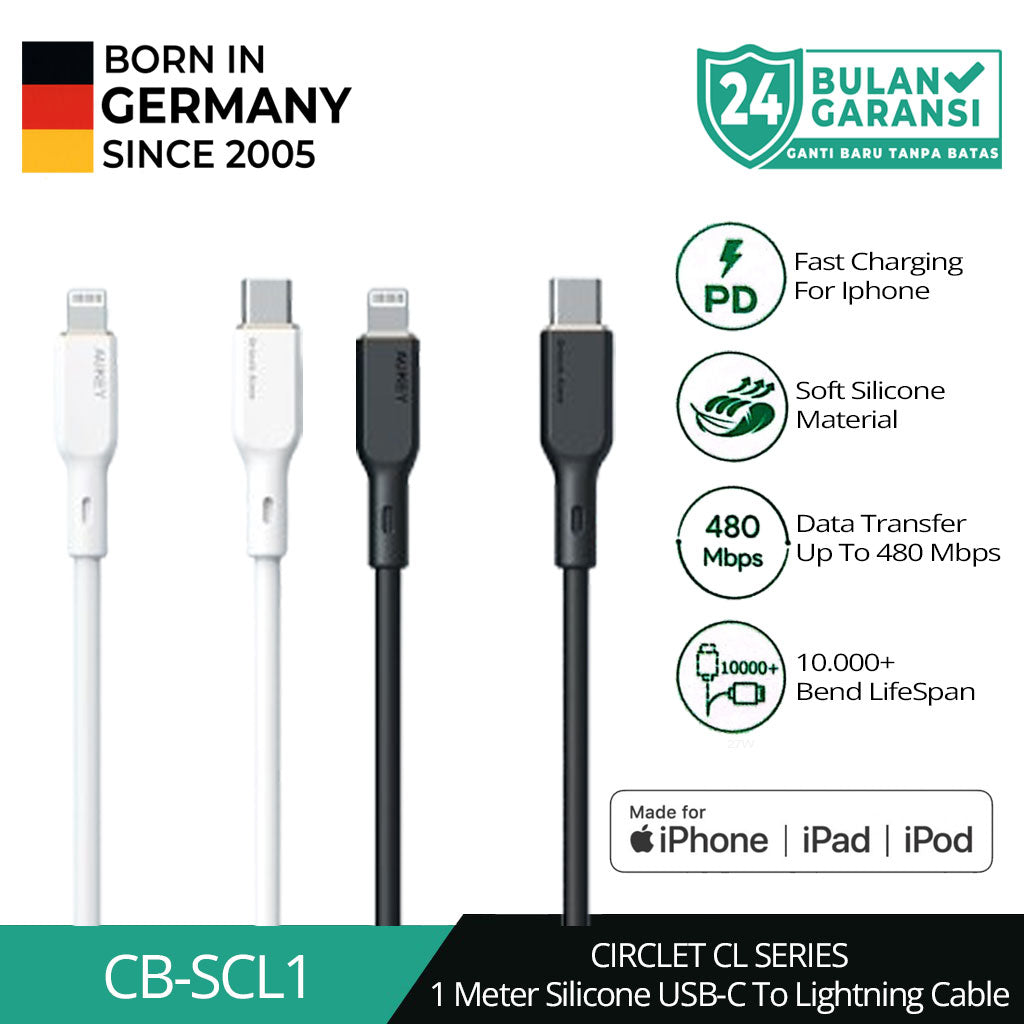 Kabel Charger AUKEY USB-C ke Lightning MFI CB-SCL1 Silikon Putih 1M