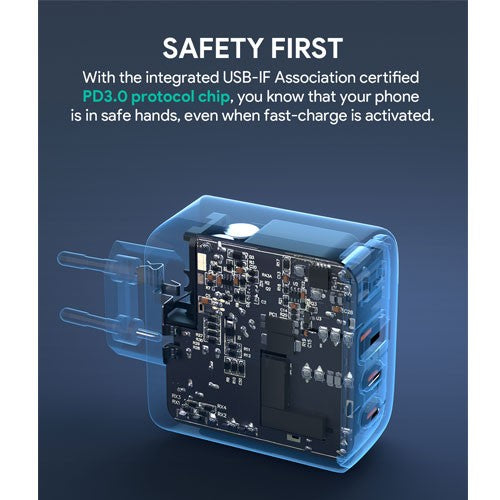 AUKEY Charger Multi Port Type C65W GAN PD 3.0 Fast Charging PA-B6T