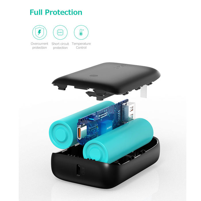 Power Bank Aukey Multi Port Type C In / Out 20W PD 3.0, USB A Out 22.5W Slim And Portable Design