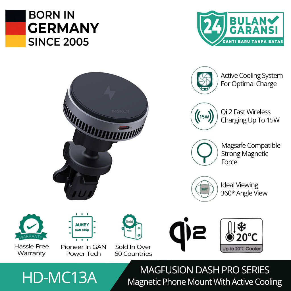 AUKEY Qi2 Magnetic Car Phone Mount Fast Wireless Charging 15W With Active Cooling HD-MC13A