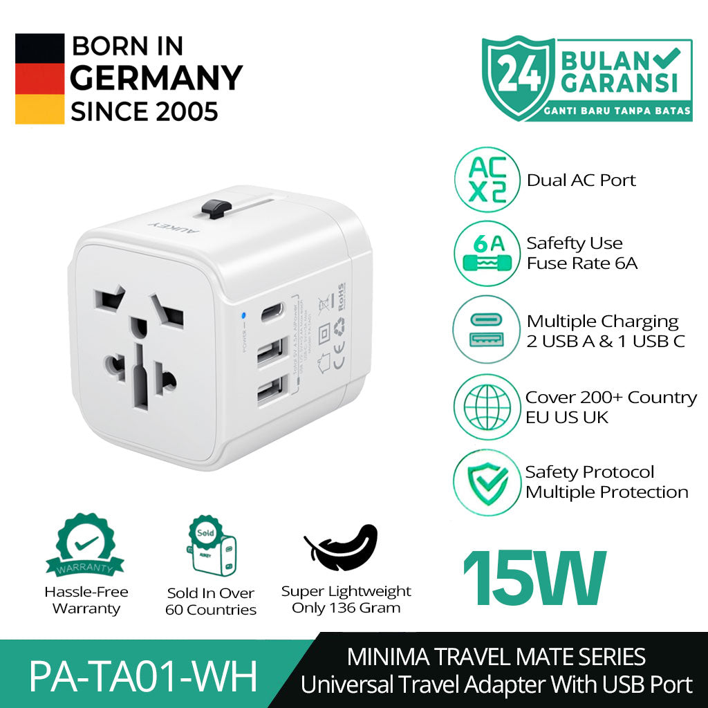AUKEY Universal Travel Adaptor PA-TA01 Type C 15W 3 In 1 EU US UK AU